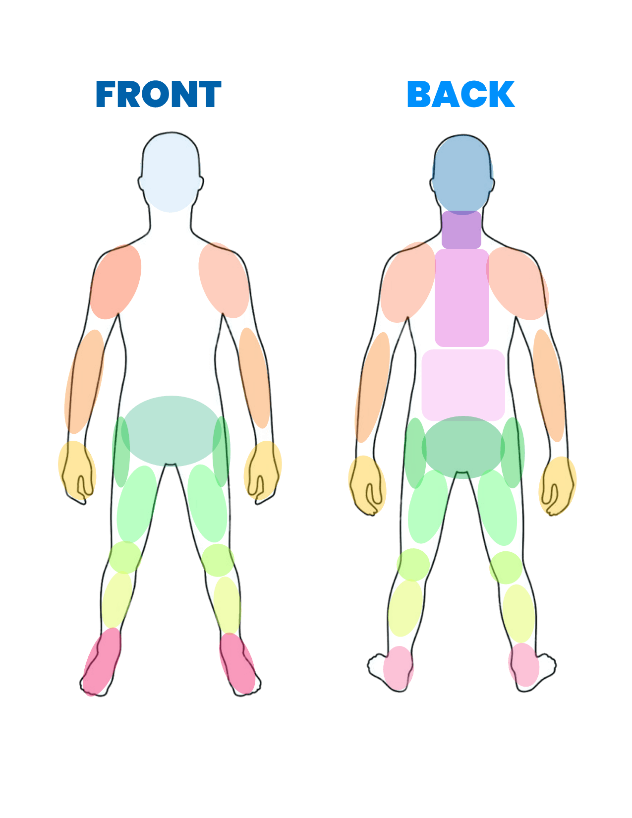 Locate your pain on the diagram to see a list of ways we can help ease your pain and restore your function at Proficient Rehab.